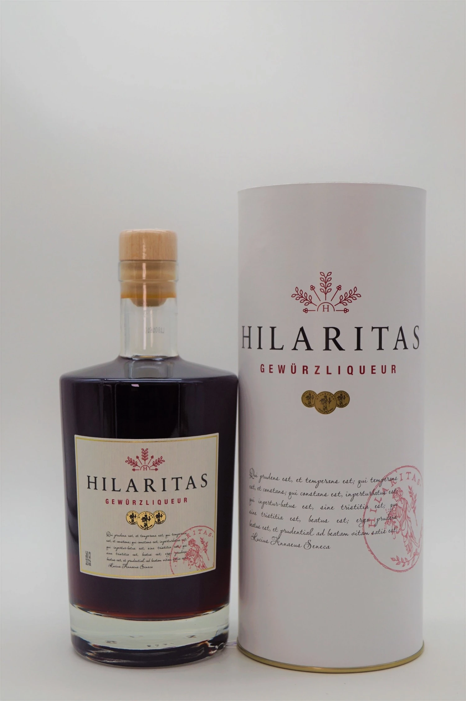 Mit diesem edlen, harmonisch zwischen süß und würzig ausbalancierten Gewürzliqueur setzt sein Schöpfer dieser Heiteren Gelassenheit ein eindrucksvolles Denkmal und versetzt Feinschmecker in die Lage, mit dem Gaumen philosophieren zu können. Sein außergewöhnliches Aromaspektrum verdankt Hilaritas der besonders langen Mazeration allerfeinste Gewürze – insbesondere Vanille, Anis und Zimt.