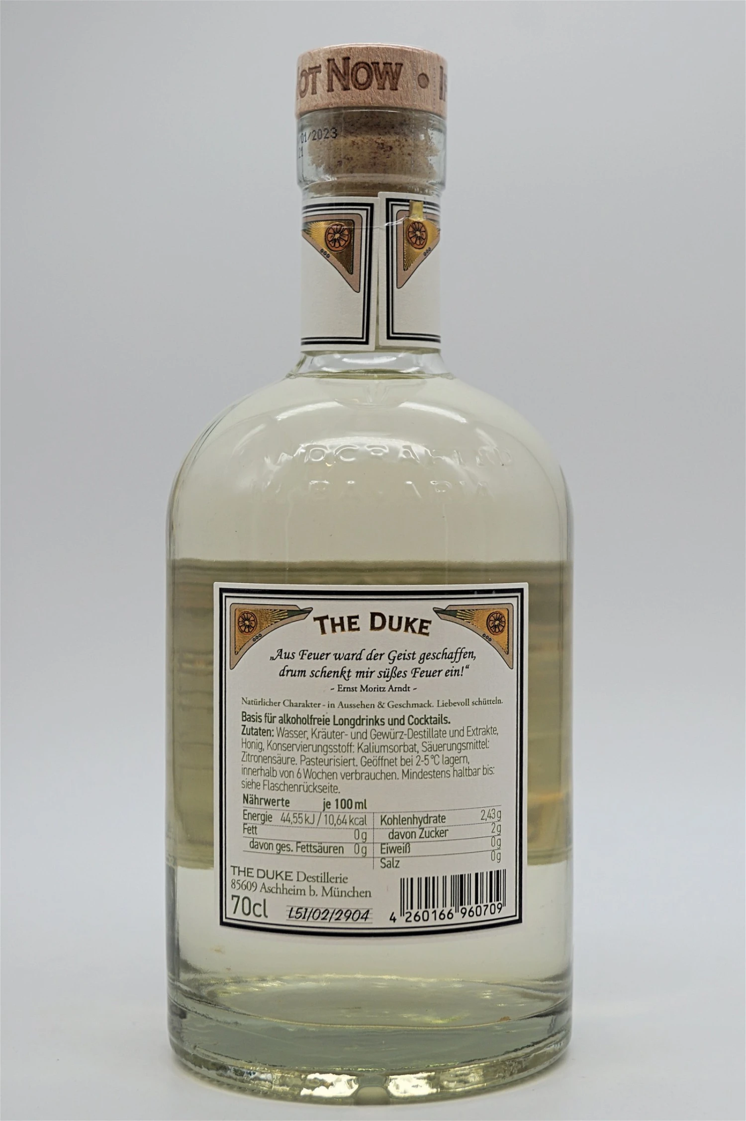 Als alkoholfreie Alternative zum Duke Dry Gin und Basis für alkoholfreie Longdrinks und Cocktails, wird der THE DUKE – Entgeistert in Handarbeit aus erlesenen Kräutern und Gewürzen hergestellt. Feine Destillate und Extrakte verleihen ihm seine natürliche Färbung und sorgen für einen besonders vollmundigen Geschmack.